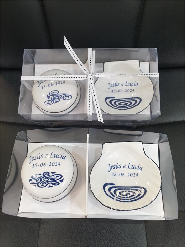 Artesania gallega, cajita + vieira grabadas
