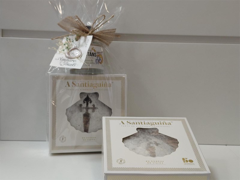 Crema espirituosa de orujo + tarta almendra "A Santiaguiña en vieira Riquisima!!