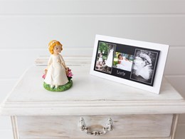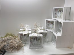 Presentación hucha -marco madera en blanco